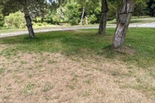 We can apply a Moss Control product in the early spring or fall. Once the moss turns black it must be raked up and the bare areas should be renovated.